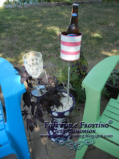 It all started when my sister gave me a set of wine glass stakes, complete with a bottle holder. My sis, knowing the wino that I am, thought I'd make great use out of them. Stick a stake in the ground, to hold my wine glass, now thats awesomesauce. I was all excited to use them until I walked outside and realized, ah crap, we put a patio in last year! You cant stick a stake into brick!